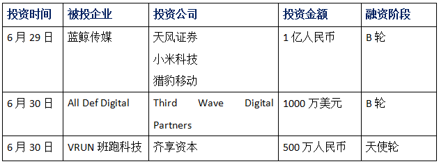 7、藍鯨傳媒集團完成億元B輪融資,小米獵豹參投