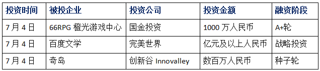 7月4日,完美世界正式宣布對百度文學注資并實現控股。并表示,百度與完美世界將以文學為連接點,在文學業務、版權業務、影游投資開發、影游產業鏈聯動等方面展開深度合作,具體金額未公布。