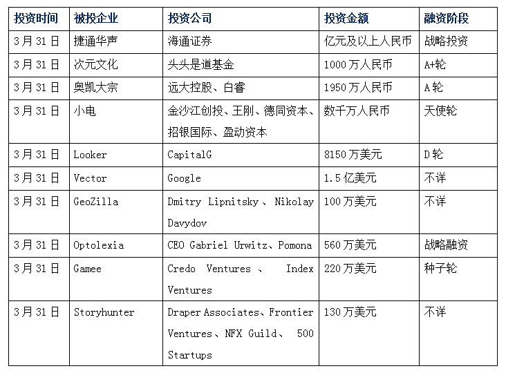 3月31日,紐約初創公司Storyhunter獲得130萬美元融資,領投方為Draper Associates,Frontier Ventures(此前曾參與投資),NFX Guild, 500 Startups跟投。