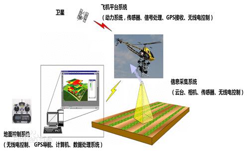 無人機為空中遙感平臺的微型遙感技術,其特點是:以無人機為空中平臺,遙感傳感器獲取信息,用計算機對圖像信息進行處理,并按照一定精度要求制作成圖像。