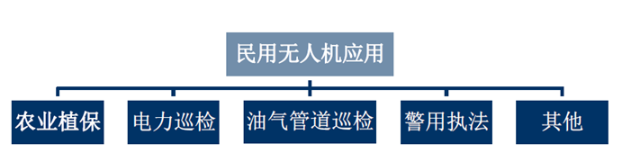 民用無人機下游應用行業廣泛,包括農業植保、電力巡檢、油氣管道巡檢、森林防火、公安執法 & 反恐維穩、地質勘探和海洋遙感等,預計潛在市場規模遠超軍用無人機市場。