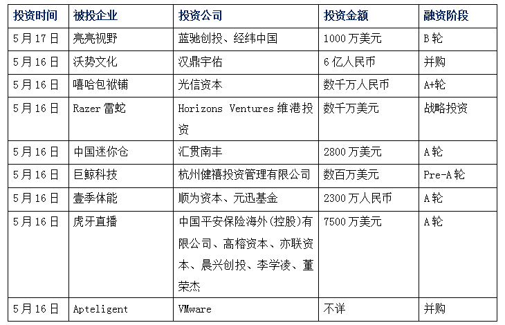 5月16日,游戲外設公司雷蛇(Razer)獲得數千萬美元的戰略投資,此輪投資方為Horizons Ventures維港投資。