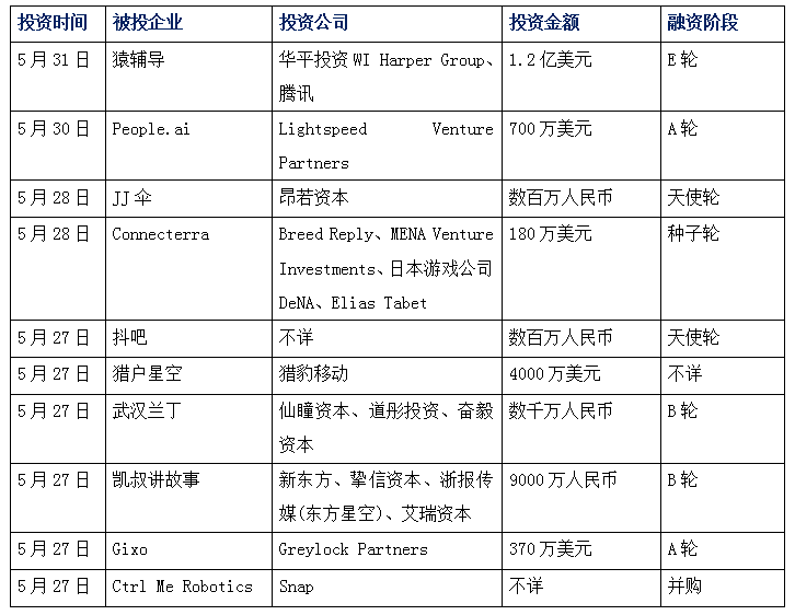 今日娛投:猿輔導完成E輪融資,躋身獨角獸行列;用AI幫助銷售人員優化工作流程,People.ai獲A輪融資;自助健身倉“抖吧”獲數百萬天使投資