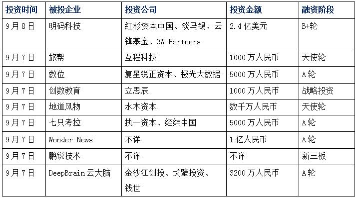 9月8日,藥明康德集團企業藥明明碼(WuXi NextCODE)宣布完成2.4億美元的B+輪融資,由紅杉資本中國領投,Temasek淡馬錫、云鋒基金和3W Partners等跟投。