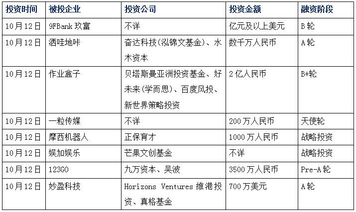 今日娛投:玖富集團獲B輪融資,大型央企聯投;從擦地機切入清潔家電領域,灑哇地咔獲千萬投資;作業盒子獲億元融資,貝塔斯曼領投