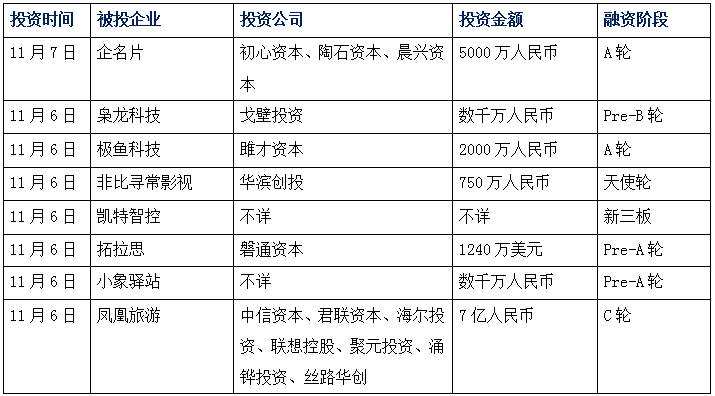 11月7日,企業數據和金融工作系統服務商“企名片”宣布完成5000萬人民幣的A輪融資,由初心資本、晨興資本、陶石資本等投資機構共同投資。
