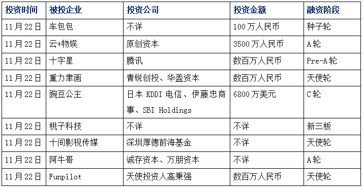 11月22日,漫畫內容提供商“十字星”宣布獲得數百萬元的Pre-A輪融資,投資方為騰訊。據悉,本輪融資完成后,資金將主要用于補齊中層管理的空缺,并以制作委員會制度的方式參與到漫改游戲的制作中。