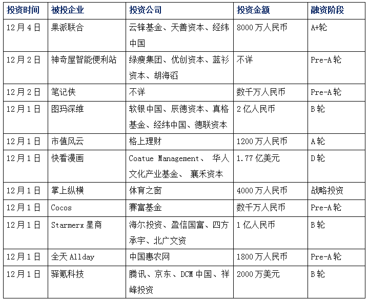 今日娛投:果派聯合獲千萬融資,云鋒基金領投;神奇屋獲Pre-A輪融資,打造“零售+社區服務”綜合業態;圖瑪深維獲B輪融資,軟銀中國領投