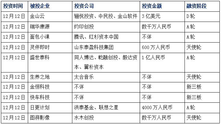 今日娛投:金山云獲D輪融資,投后估值達19億美元;瑞華康源獲千萬投資,專注大數據開發;面包小課獲A輪融資,騰訊領投