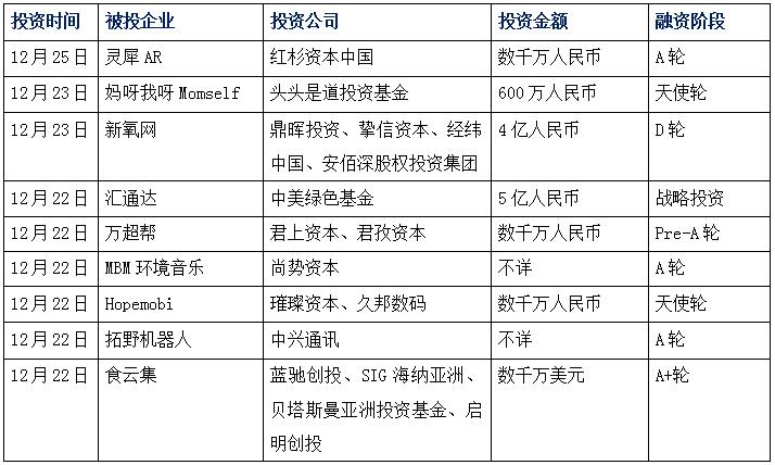 12月25日,AR光學顯示技術提供商“靈犀AR”獲得數千萬人民幣的A輪融資,投資方為紅杉資本中國。據悉,本輪融資主要用于前沿技術研發、產品迭代優化,以及籌備自有生產線,引進和培養專業人才。