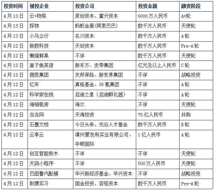 4月12日,綜合醫療服務機構“微醫集團”宣布公司已獲得新一輪融資,投資方為友邦保險、新世界集團,具體融資金額暫未透露。